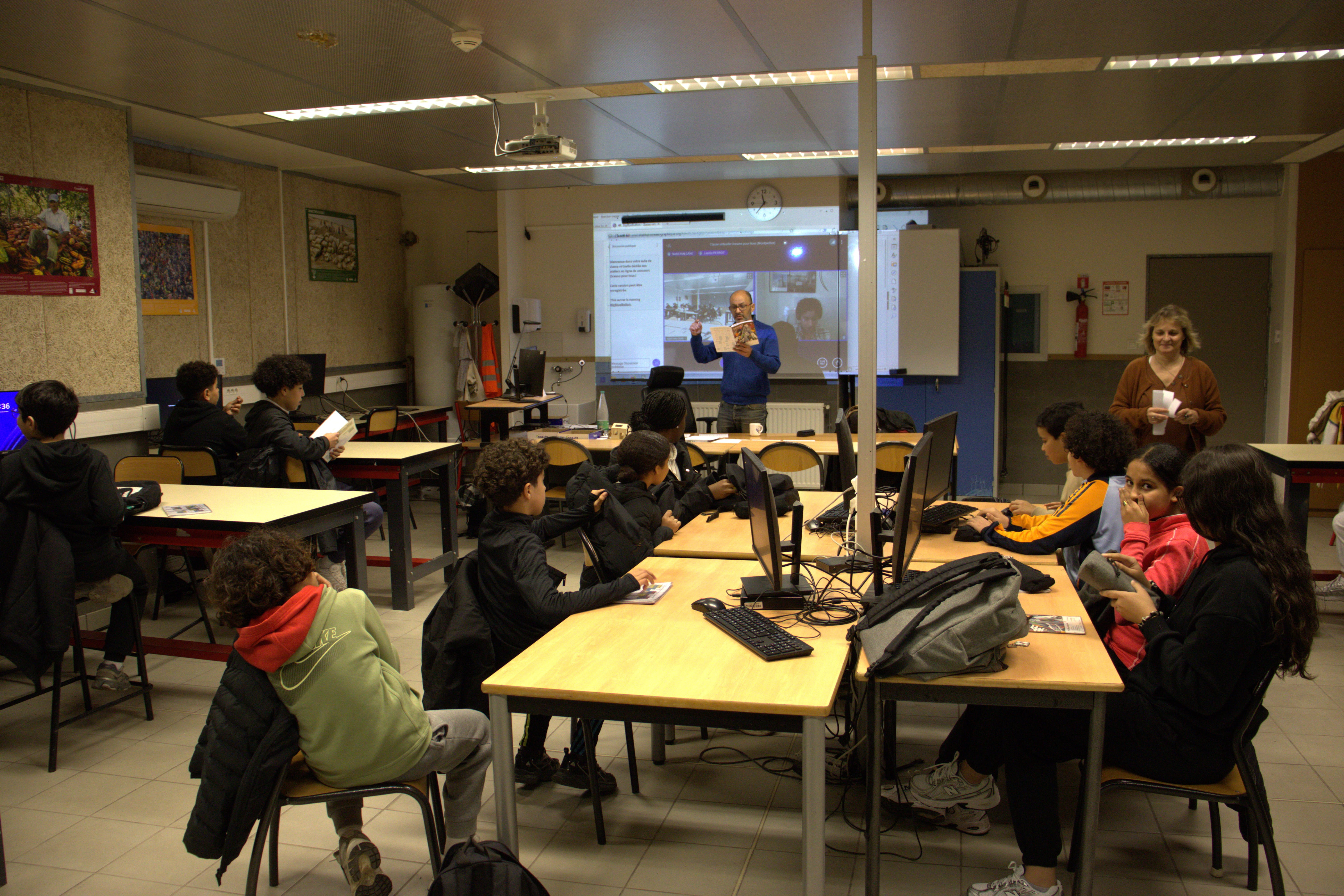 Le projet est lancé depuis le 15 décembre 2025, nos élèves ont pu s’entretenir en visioconférence avec la responsable pédagogique de l’Institut Océanographique de Monaco et poser toutes leurs questions sur la faune marine méditerranéenne.