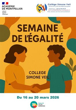 La semaine du 16 au 20 mars, le collège Simone VEIL célèbre la Semaine de l'Égalité sur la thématique de l'Égalité Filles-Garçons